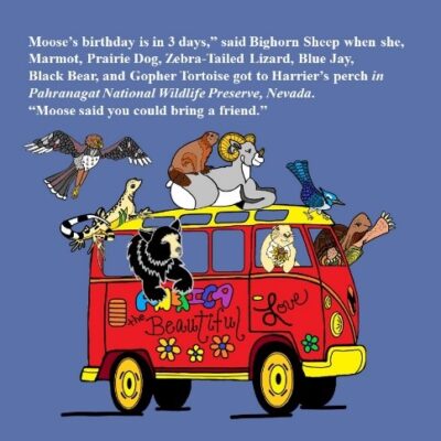 As I grew as a book designer and studied more children’s books in libraries and bookstores, I expanded my book design. This is an example of a two-page layout in Journey to Moose’s (2020):