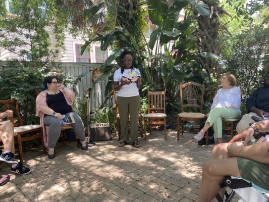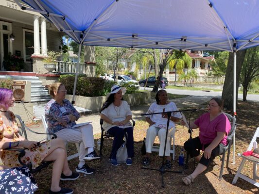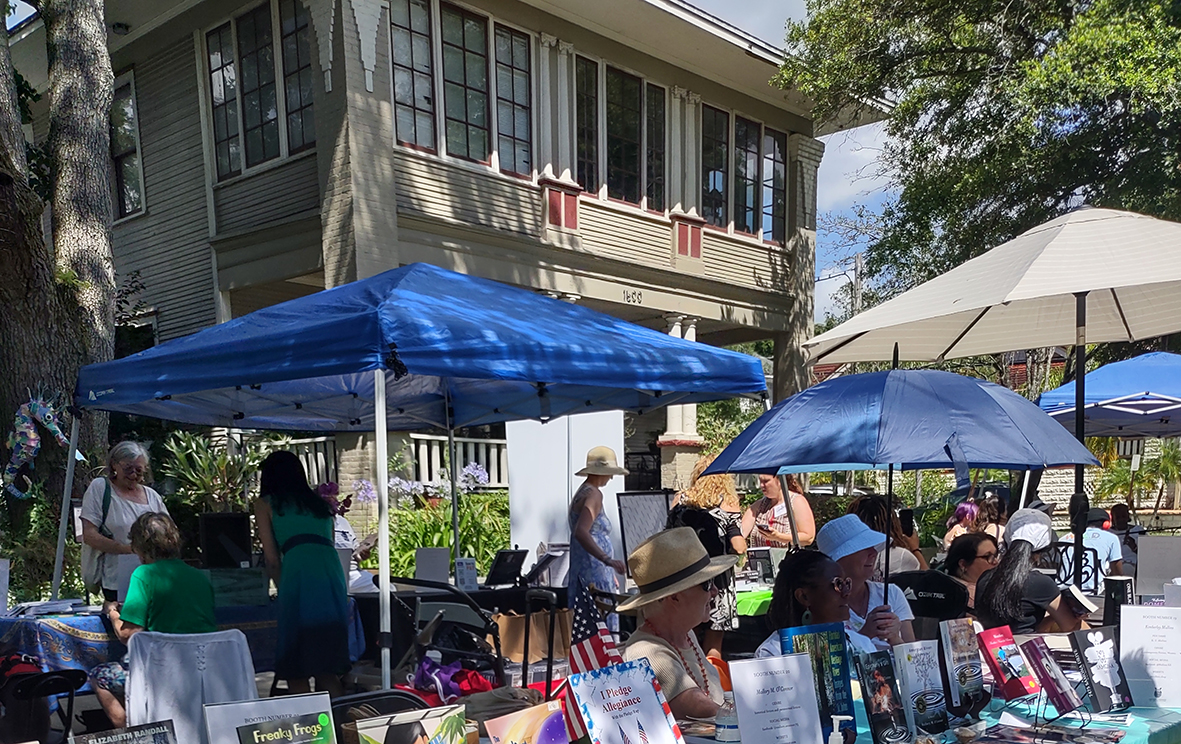 WAG was well represented at the recent Author Showcase and Book Festival on May 14 hosted by the Jacksonville chapter of Women Writing for (a) Change, held at the beautiful historic Jacksonville home of organizer Jennifer Wolfe. Thirty-five authors were joined by Hands-on OCEANS Education team from the Jax Zoo, Friends of Peace Park Labyrinth, and the Native Plant Society. Wolfe’s historic home served as a museum for the OCEANS art exhibition.