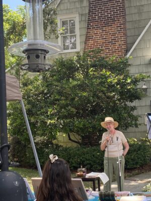 Highlighted was a list of 200 books banned in the state of Florida. Women Writing for (a) Change works to create a community among women and encourage them to use their voices for change. Their goals include support for teachers in particular, respect for a variety of opinions, and action supporting democracy through the voting booth. Wolfe jokingly told attendees, “I hope everyone here has a book banned to give a platform for women writers!”